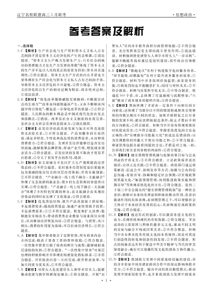辽宁省名校联盟 2024-2025学年下学期5月高三联合考试政治答案