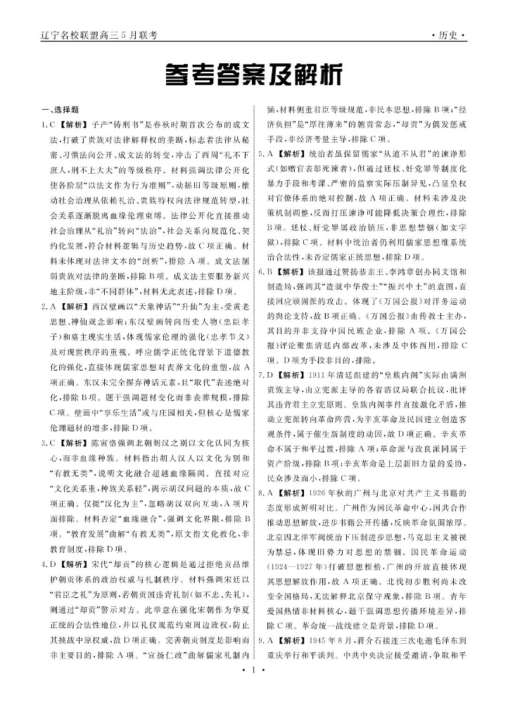 辽宁省名校联盟 2024-2025学年下学期5月高三联合考试历史答案