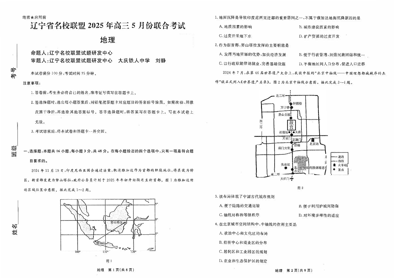 辽宁省名校联盟 2024-2025学年下学期5月高三联合考试地理
