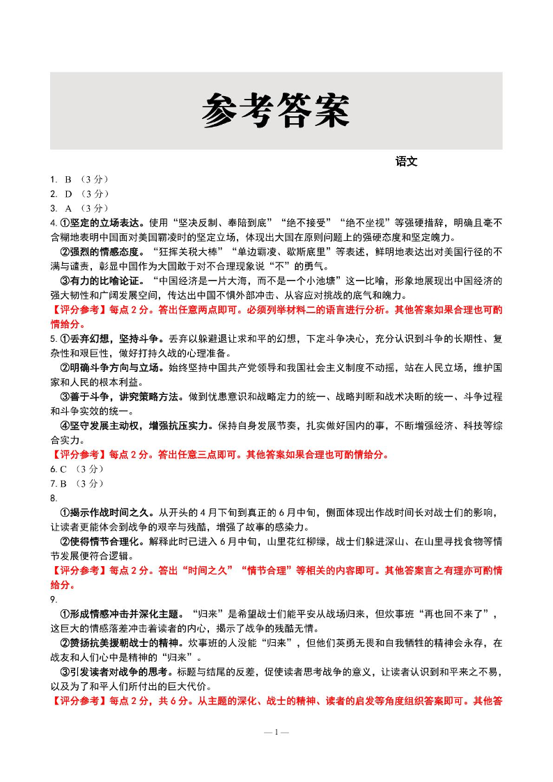 辽宁省点石联考2024-2025学年下学期5月高三联合考试语文答案