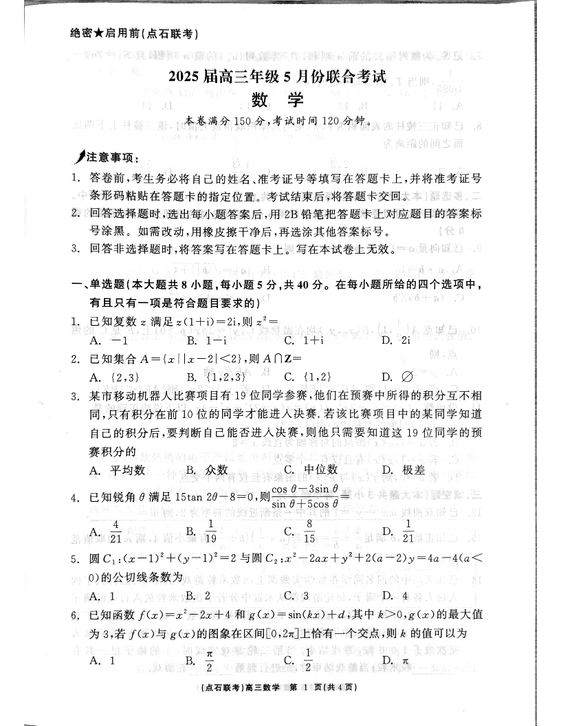 辽宁省点石联考2024-2025学年下学期5月高三联合考试数学