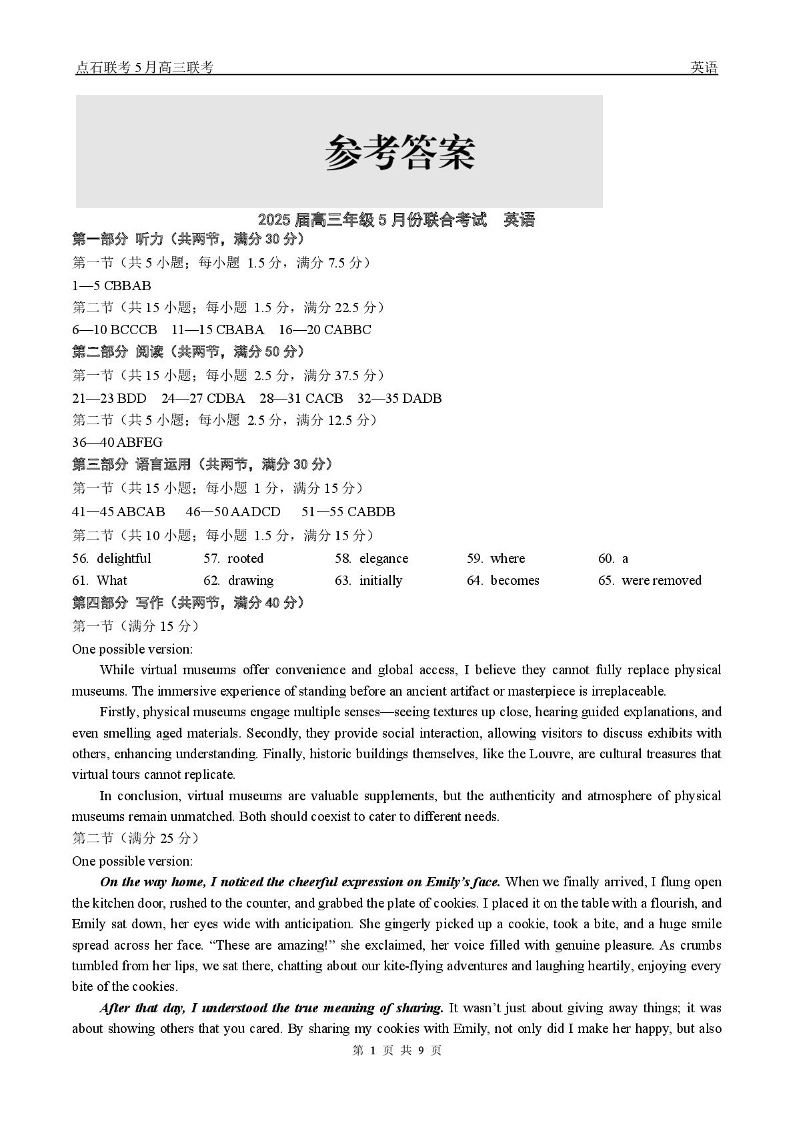 辽宁省点石联考2024-2025学年下学期5月高三联合考试英语答案