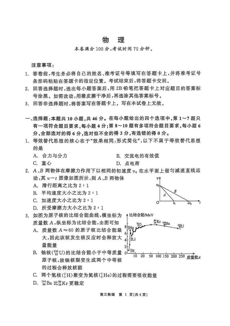 辽宁省点石联考2024-2025学年下学期5月高三联合考试物理