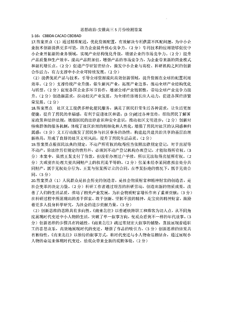 安徽省卓越县中联盟2024-2025学年下学期5月高三检测政治答案