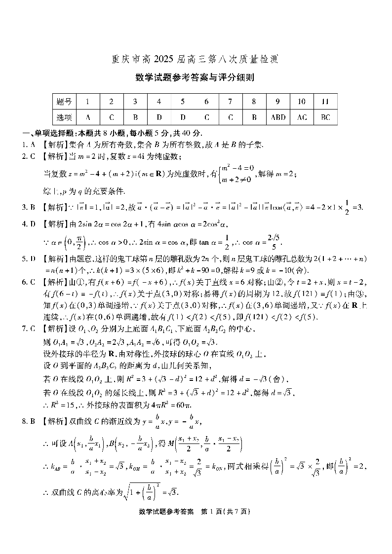 重庆市南开中学2024-2025学年下学期高三第八次质量检测数学答案