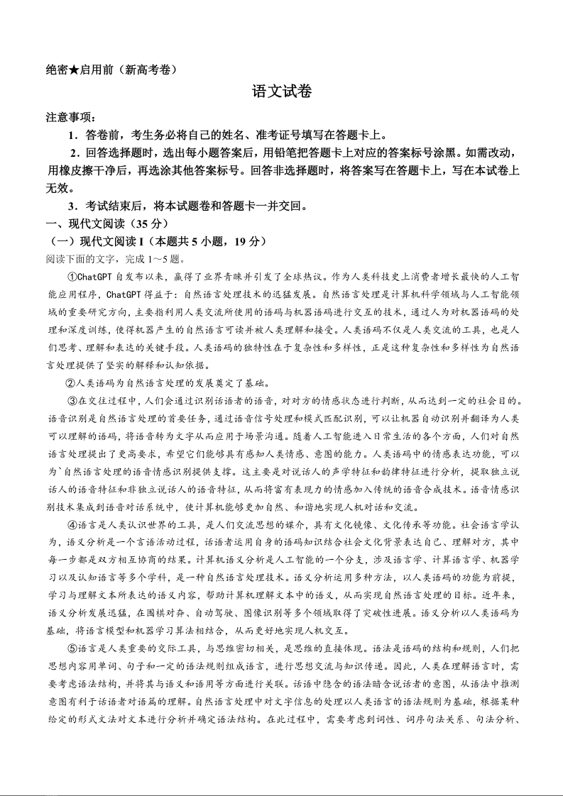 2024山西卓越联盟高三开学质量检测(243577Z)语文