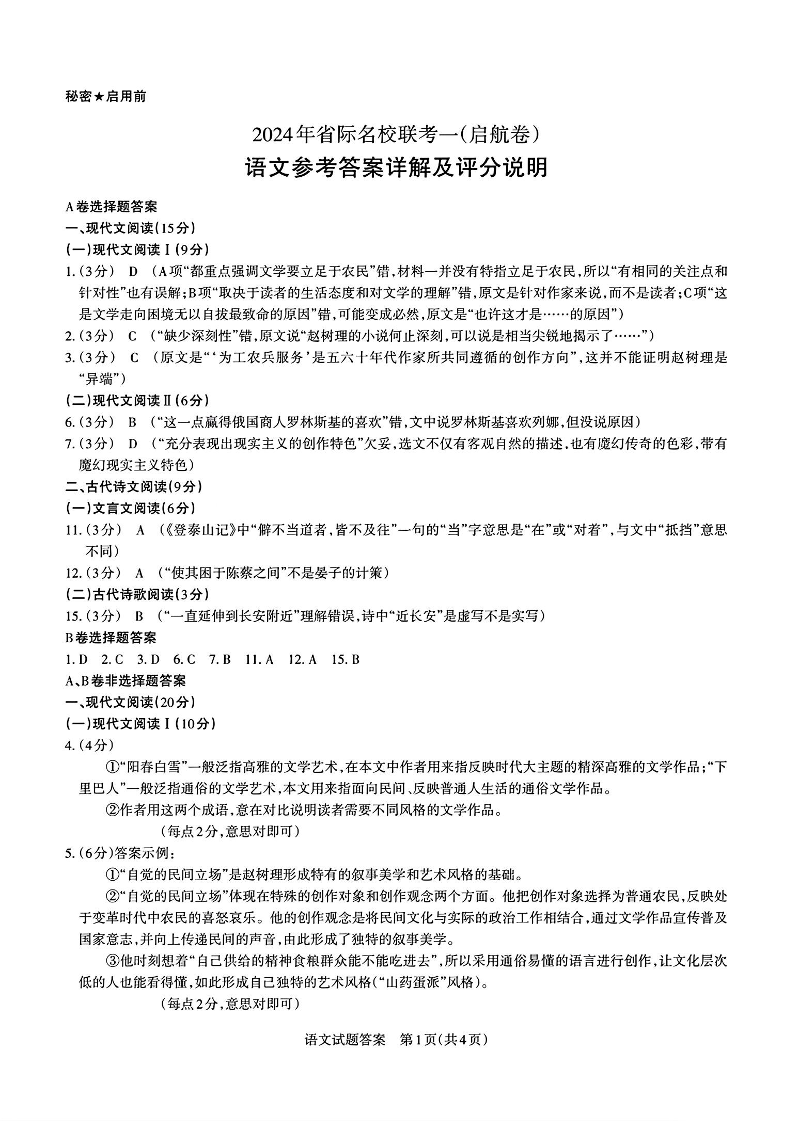 山西省际2024届名校联考(一)(启航卷)语文答案