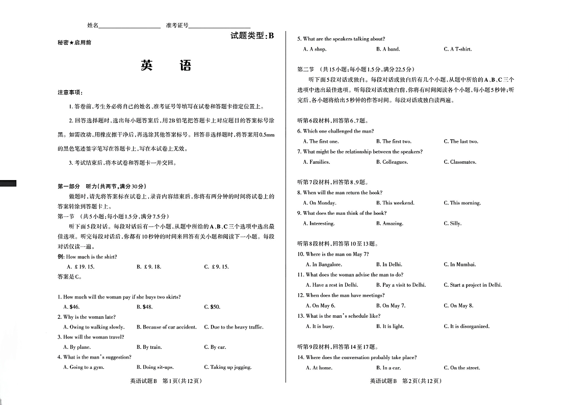 山西省际2024届名校联考(一)(启航卷)英语试题类型B