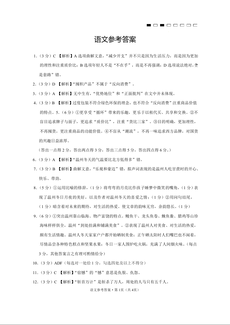 云南省昆明市云南师范大学附属中学2024届高三下学期月考(七)语文答案