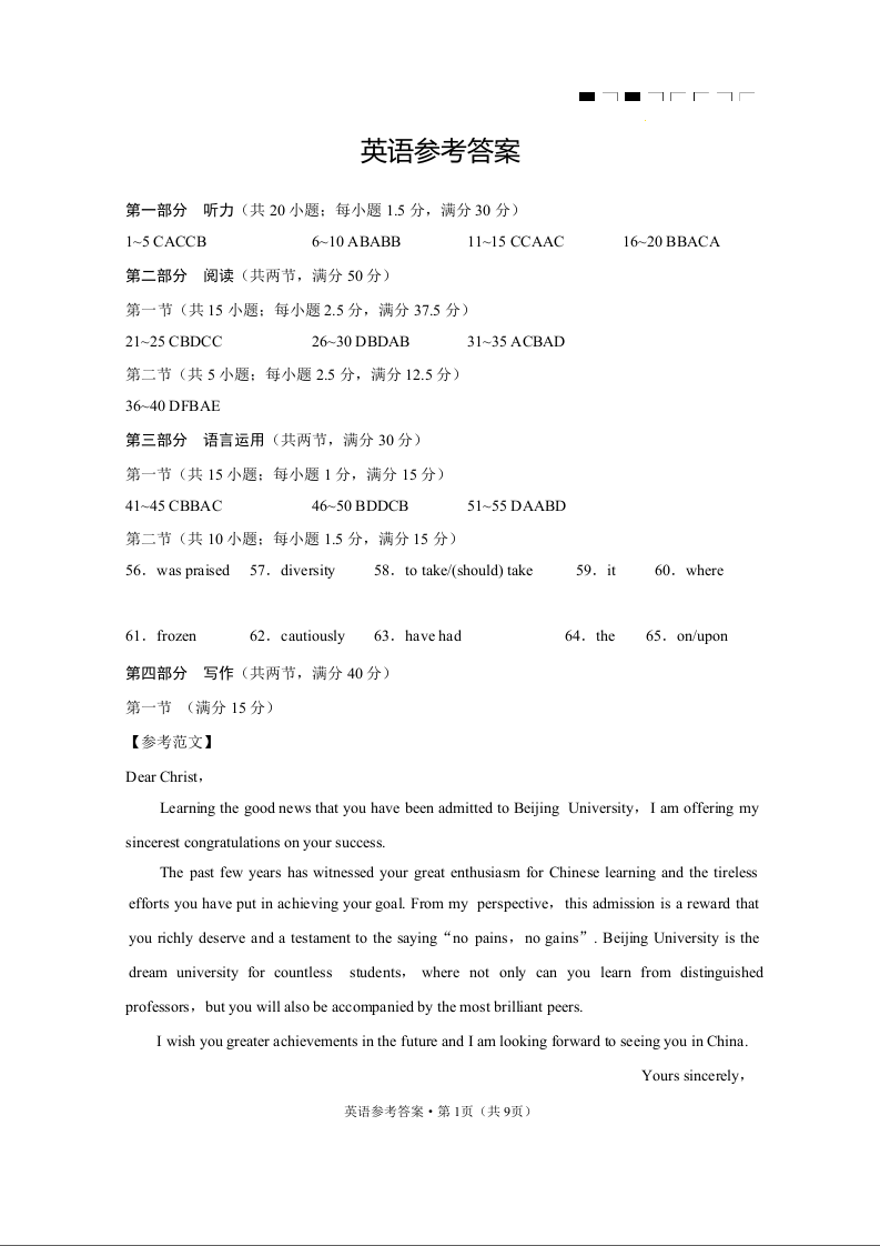 云南省昆明市云南师范大学附属中学2024届高三下学期月考(七)英语答案