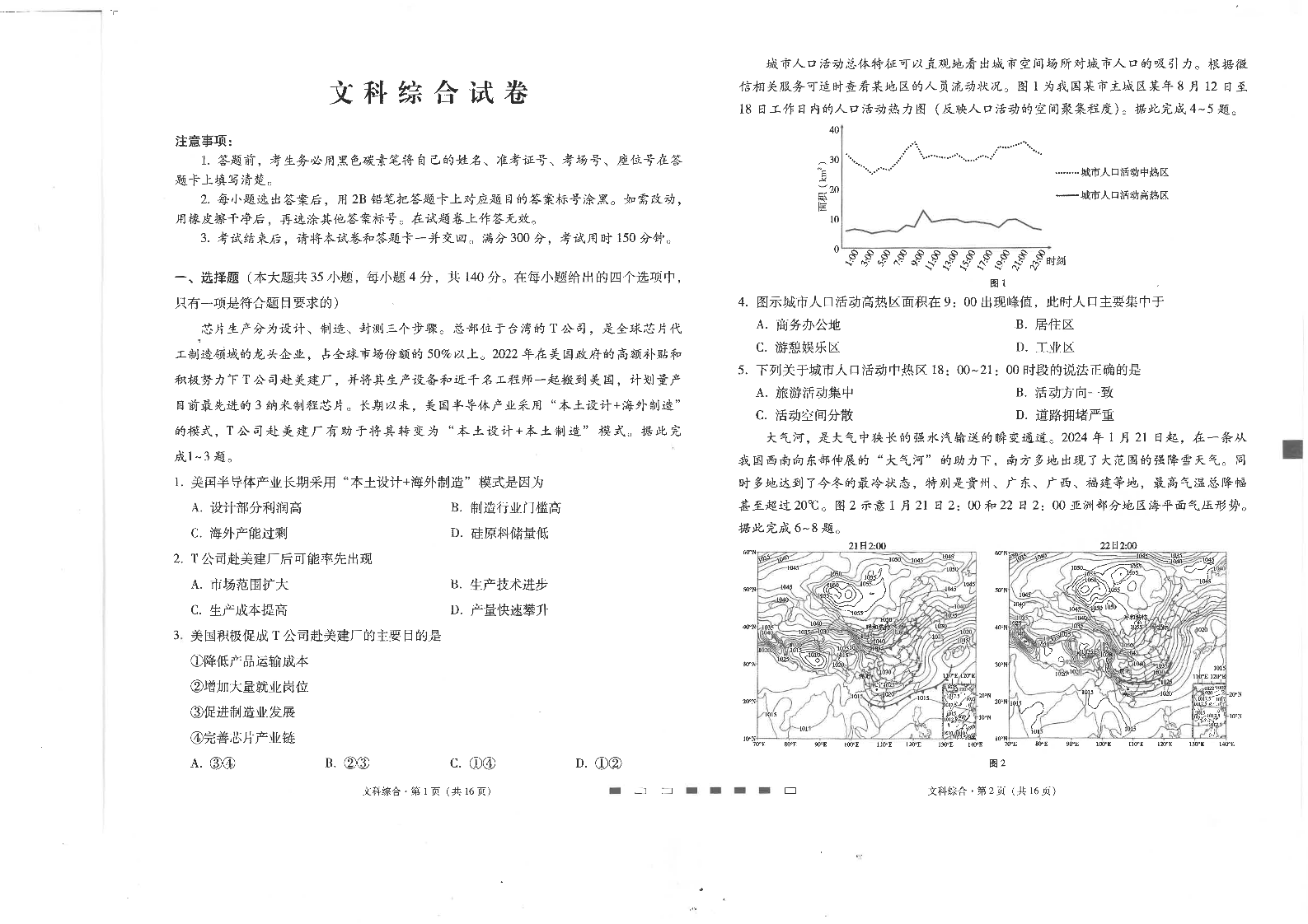 云南师范大学附属中学2024届高三下学期高考适应性月考卷(八)文综