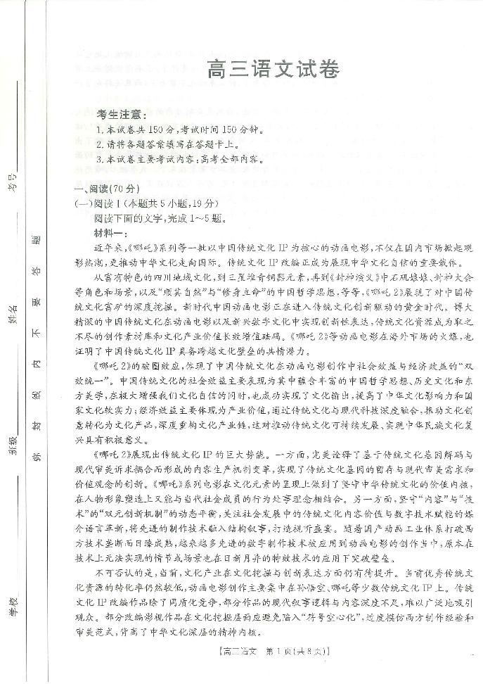 重庆市好教育联盟2024-2025学年下学期5月高三联考语文