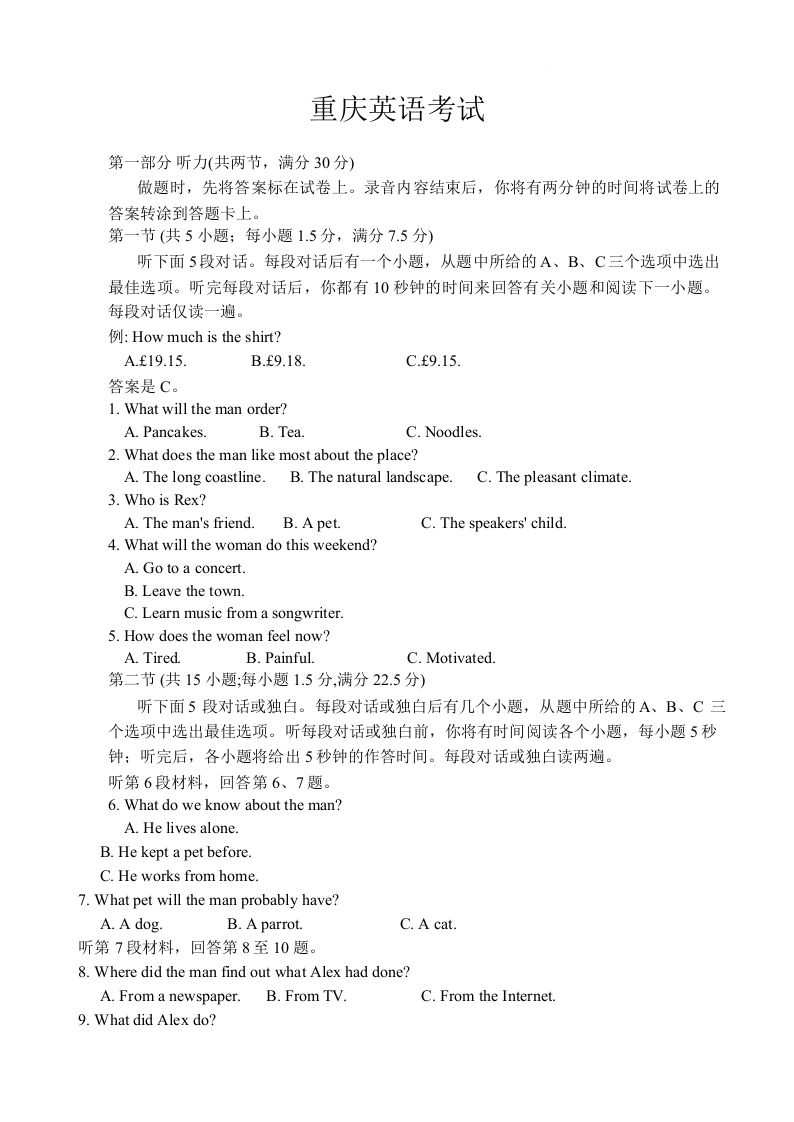 重庆市好教育联盟2024-2025学年下学期5月高三联考英语