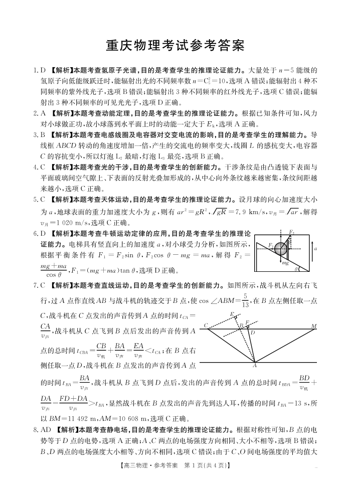 重庆市好教育联盟2024-2025学年下学期5月高三联考物理答案