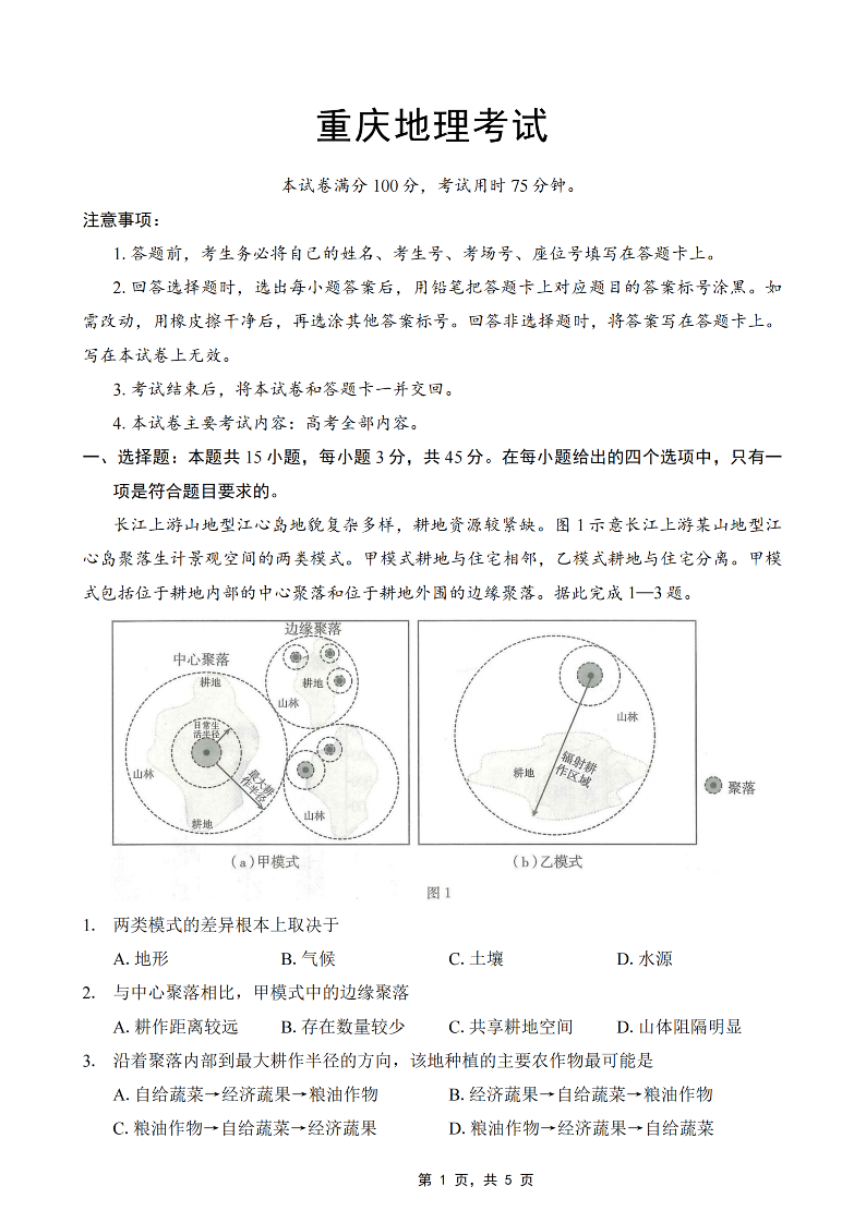 重庆市好教育联盟2024-2025学年下学期5月高三联考地理