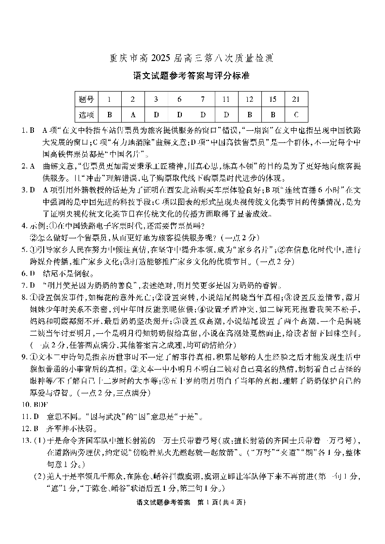 重庆市南开中学2024-2025学年下学期高三第八次质量检测语文答案