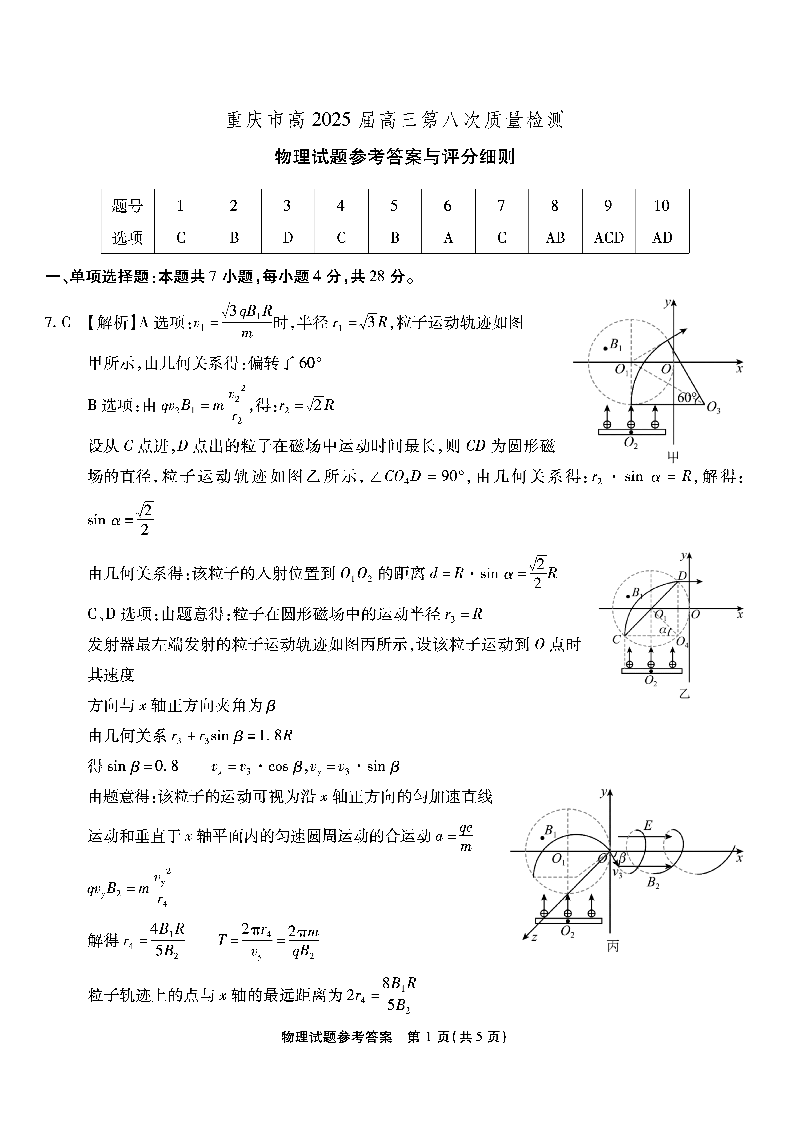 重庆市南开中学2024-2025学年下学期高三第八次质量检测物理答案