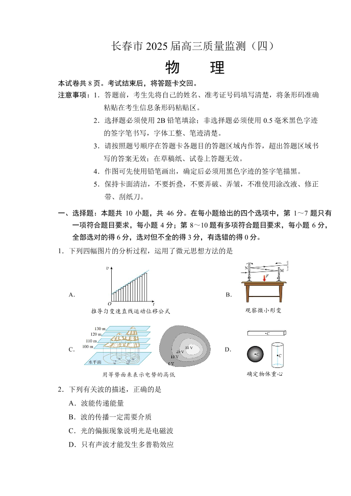 吉林省长春市2024-2025学年下学期高三第四次模拟监测物理
