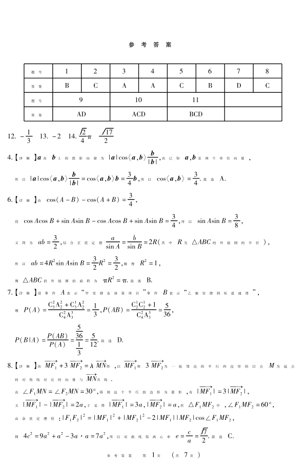 东北三省四市教研联合体2024-2025学年高三高考模拟考试(二)数学答案