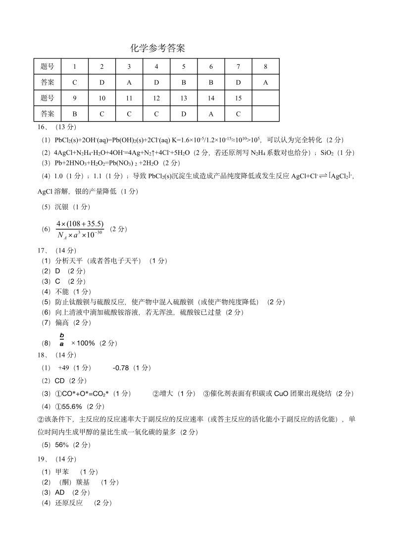 东北三省四市教研联合体2024-2025学年高三高考模拟考试(二)化学答案