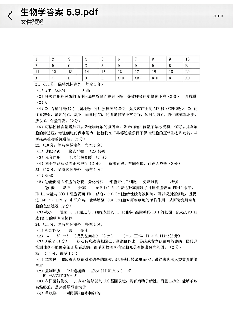 东北三省四市教研联合体2024-2025学年高三高考模拟考试(二)生物答案