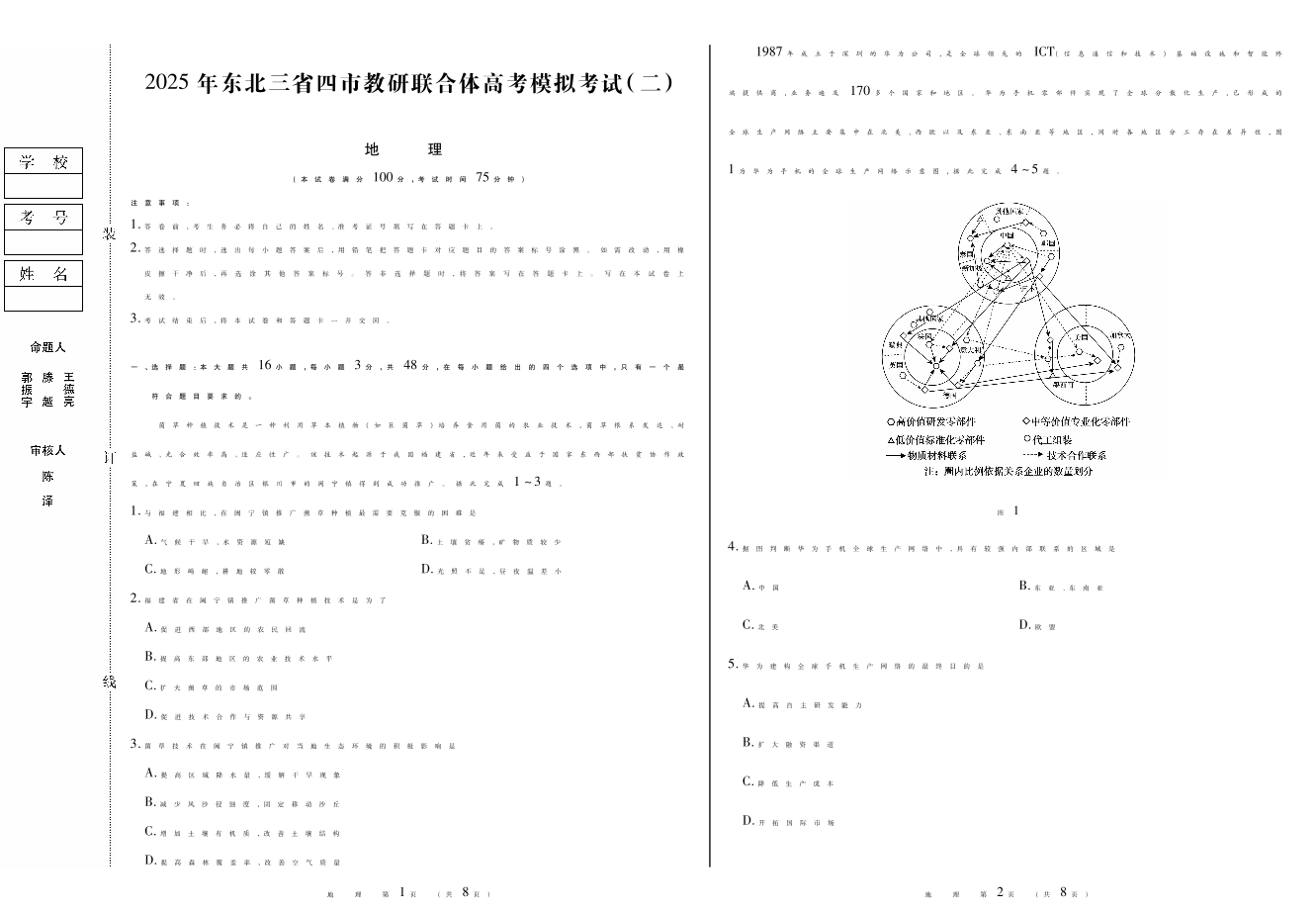 东北三省四市教研联合体2024-2025学年高三高考模拟考试(二)地理