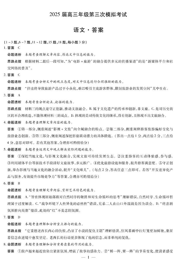 河南省许平洛济四市2024-2025学年下学期高三三模质量检测语文答案
