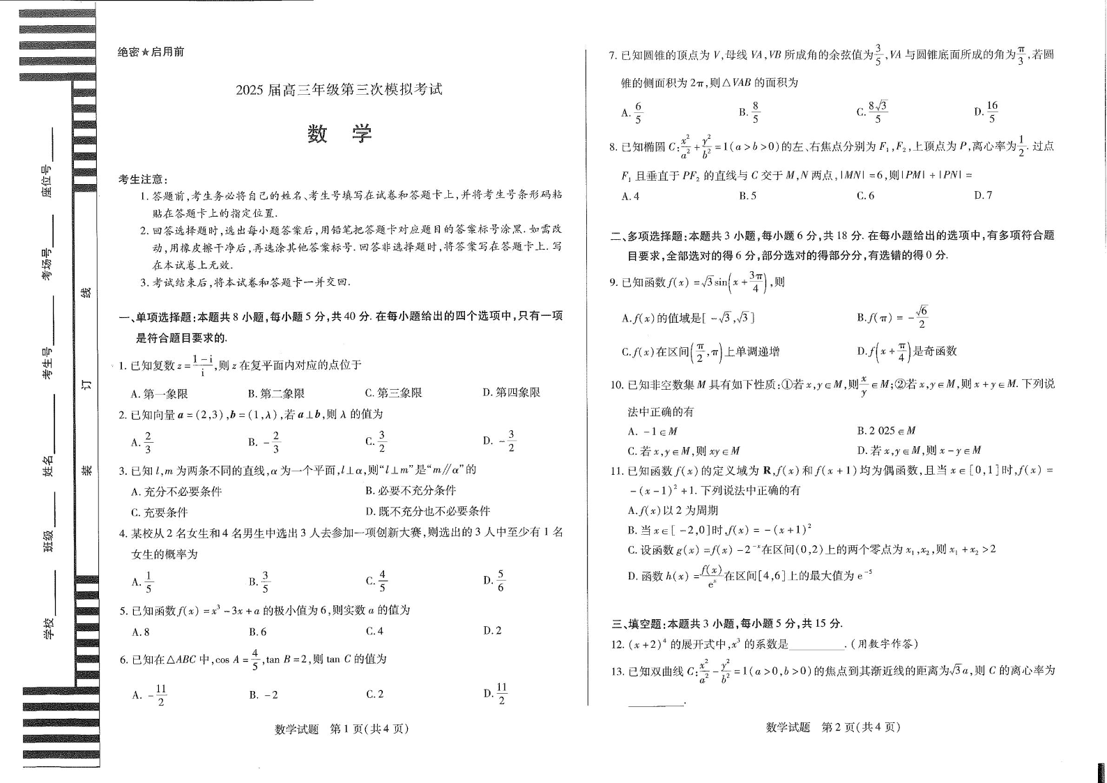 河南省许平洛济四市2024-2025学年下学期高三三模质量检测数学