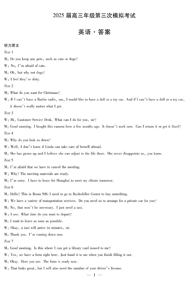 河南省许平洛济四市2024-2025学年下学期高三三模质量检测英语答案