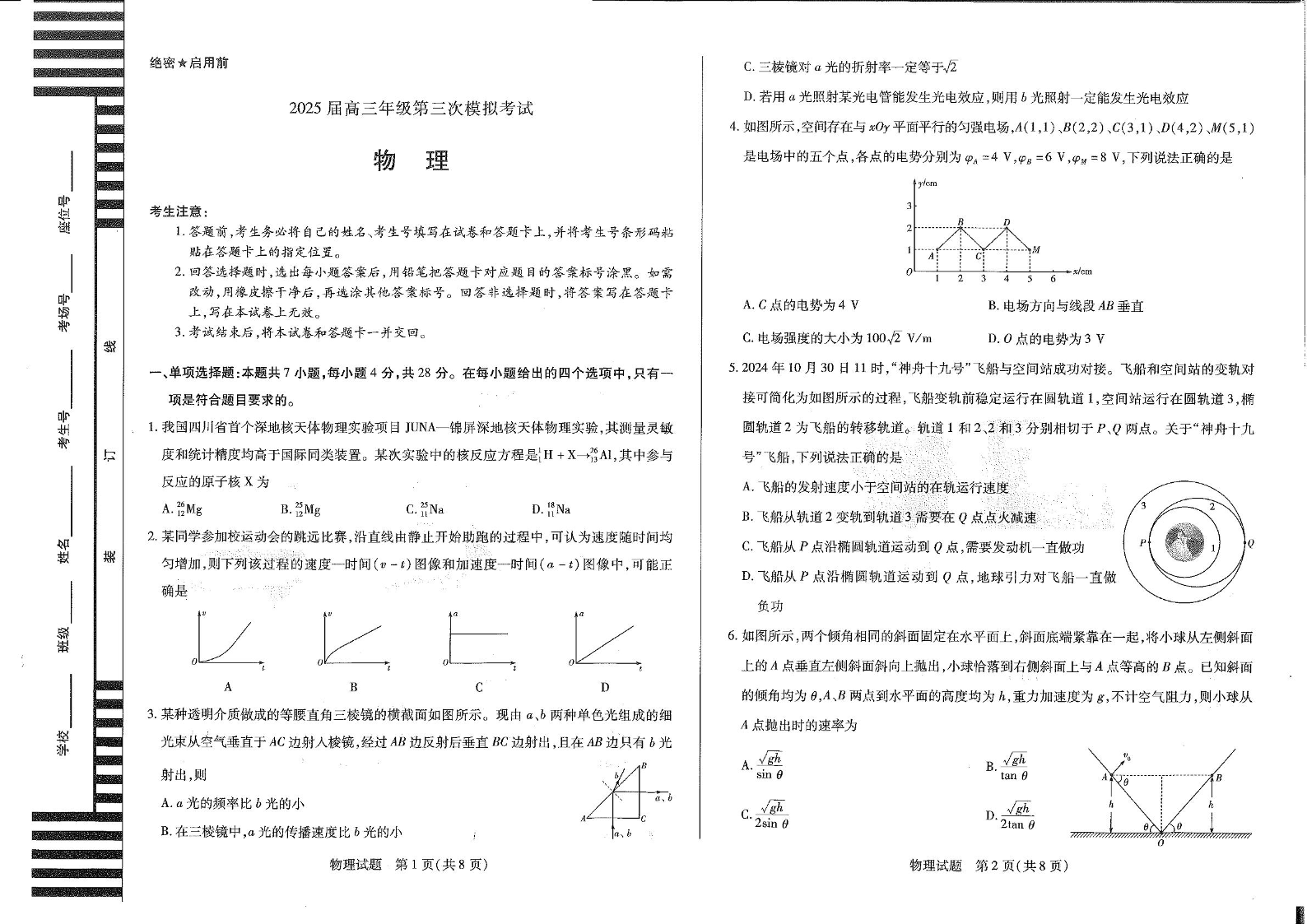 河南省许平洛济四市2024-2025学年下学期高三三模质量检测物理