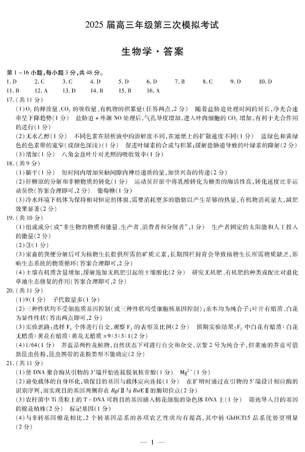 河南省许平洛济四市2024-2025学年下学期高三三模质量检测生物答案
