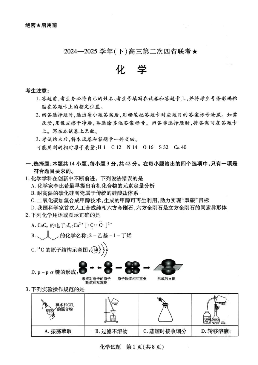 西北省份区域高中2024-2025学年下学期高三第二次联考化学+答案