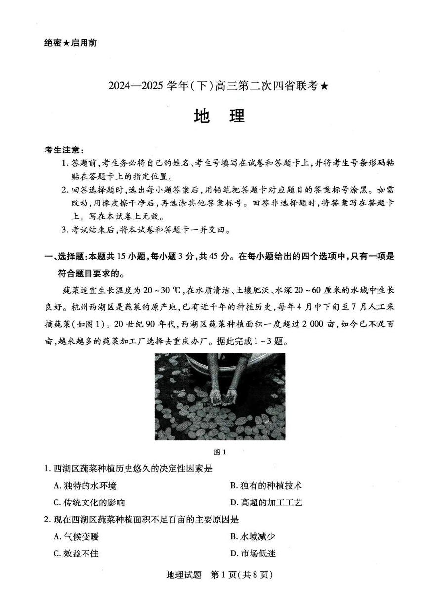 西北省份区域高中2024-2025学年下学期高三第二次联考地理+答案