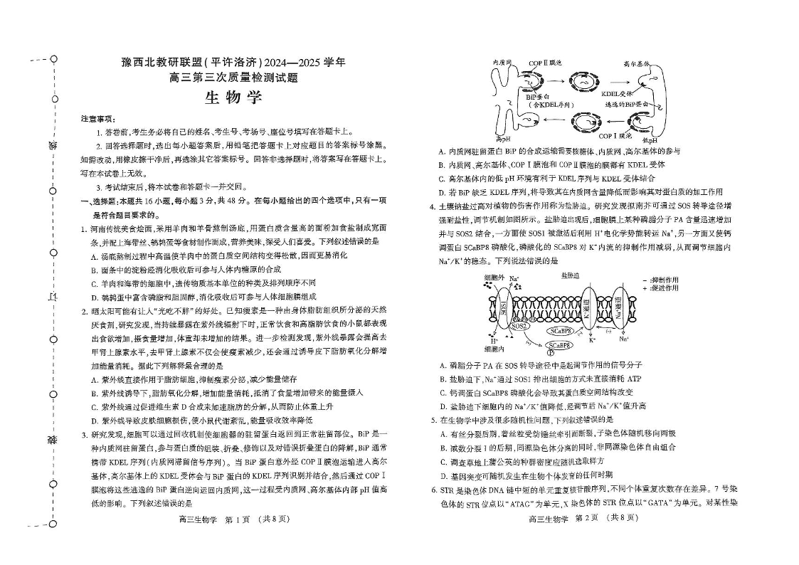 河南省许平洛济四市2024-2025学年下学期高三三模质量检测生物+答案