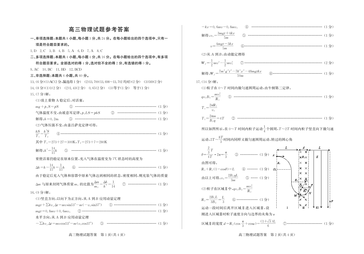 山东省烟台市2024-2025学年下学期5月高三二模测试物理答案