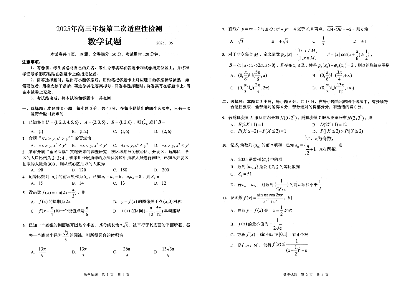 山东省青岛市2024-2025学年下学期5月高三二模检测数学
