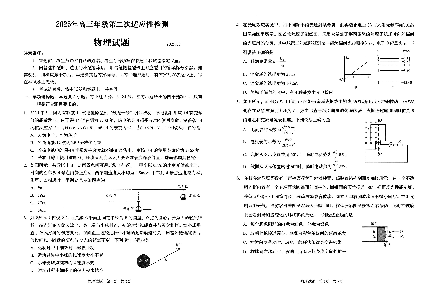 山东省青岛市2024-2025学年下学期5月高三二模检测物理