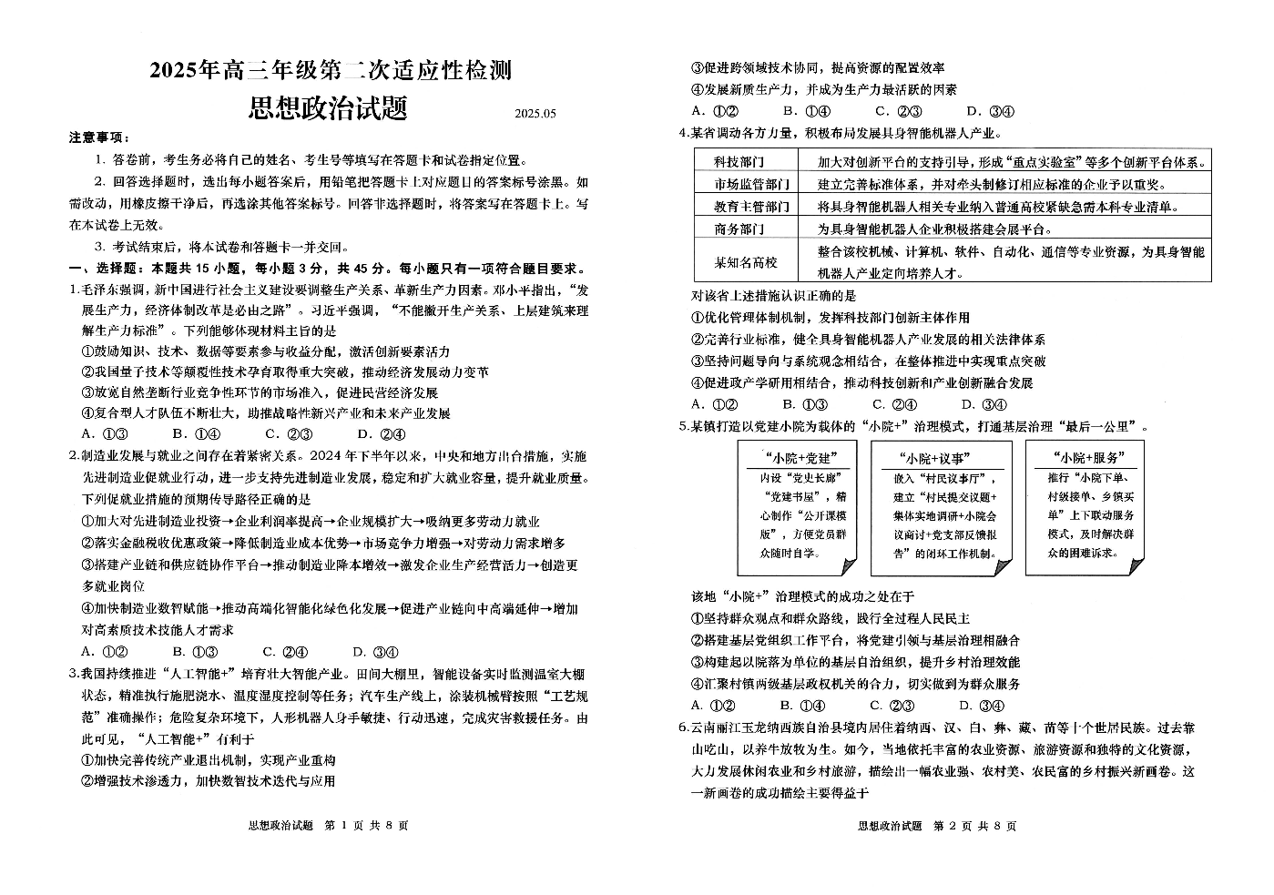 山东省青岛市2024-2025学年下学期5月高三二模检测政治