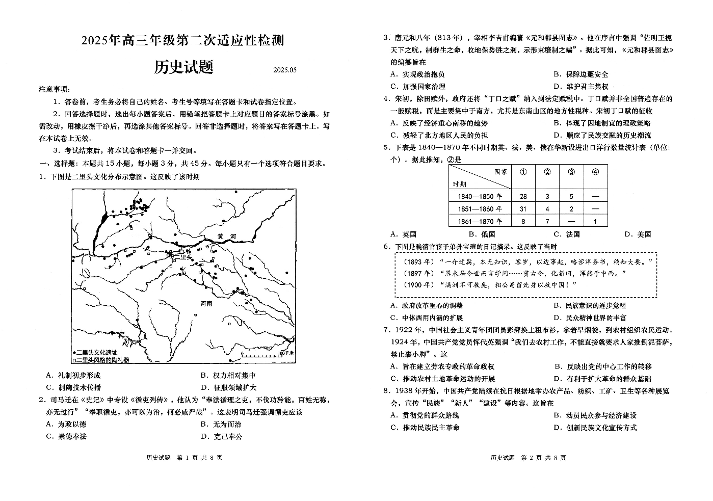 山东省青岛市2024-2025学年下学期5月高三二模检测历史