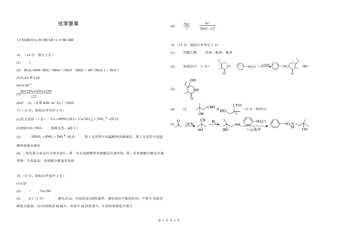 湖北省襄阳五中2024-2025学年下学期5月高三适应性考试(一)化学答案