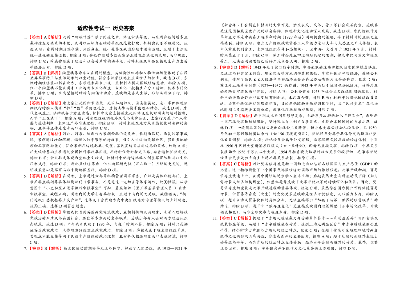 湖北省襄阳五中2024-2025学年下学期5月高三适应性考试(一)历史答案