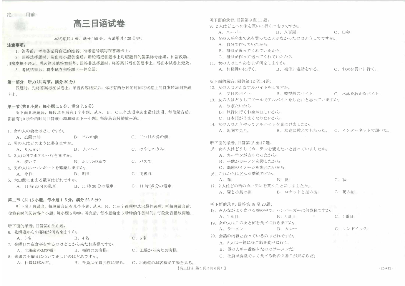 江西省区域三新协同教研共同体2024-2025学年下学期高三联考日语