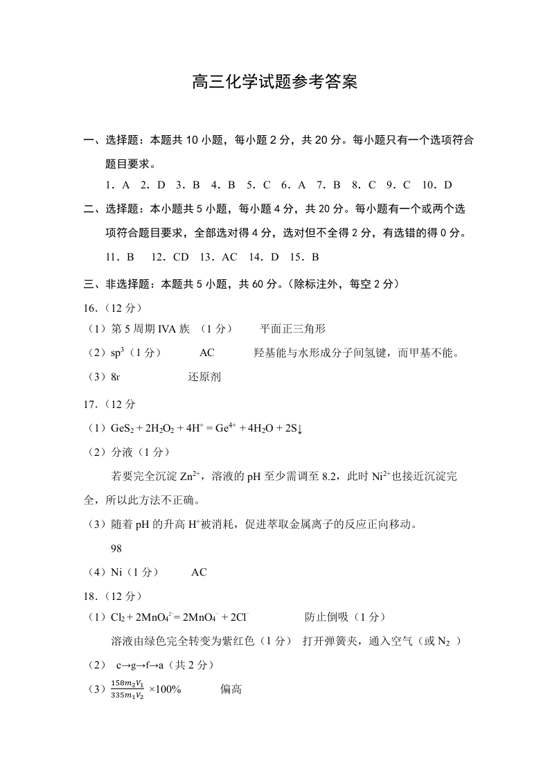 山东省菏泽市2024-2025学年下学期高三二模考试化学答案