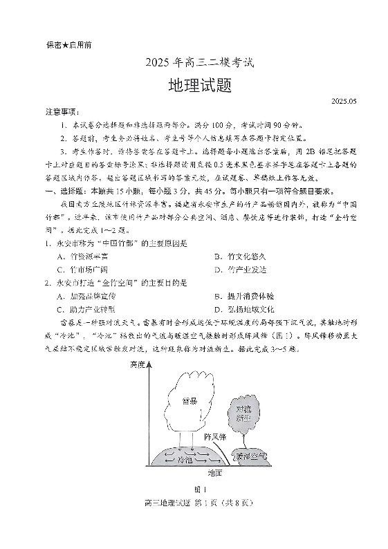 山东省菏泽市2024-2025学年下学期高三二模考试地理