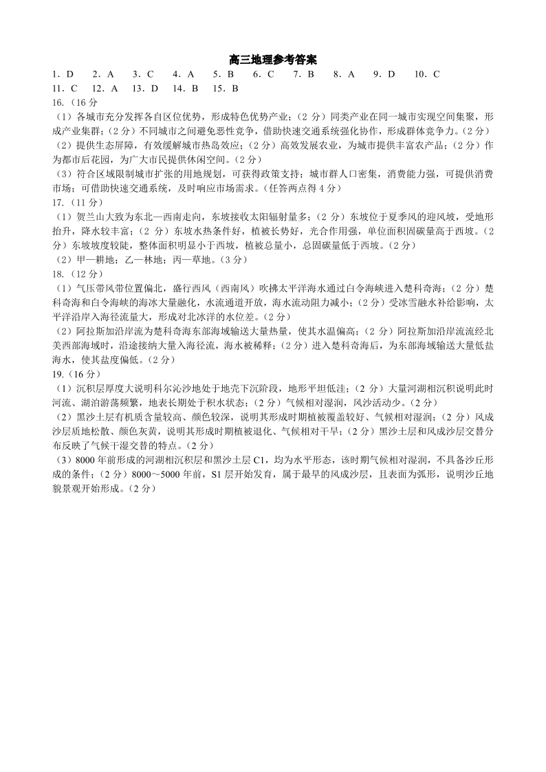 山东省菏泽市2024-2025学年下学期高三二模考试地理答案