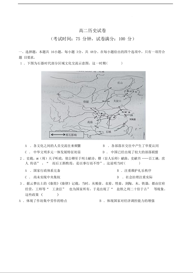 江西省上饶市重点校2024-2025学年下学期4月高二月考历史+答案