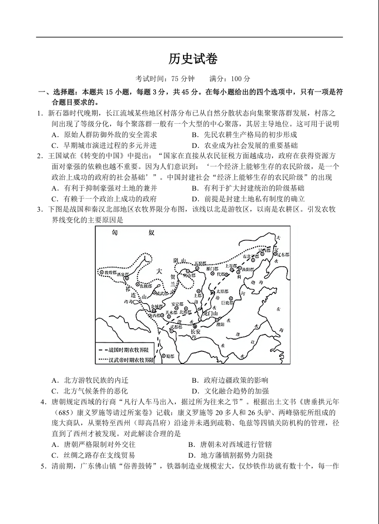 湖北省宜昌市部分省级示范高中2024-2025学年下学期4月高二期中联考历史+答案