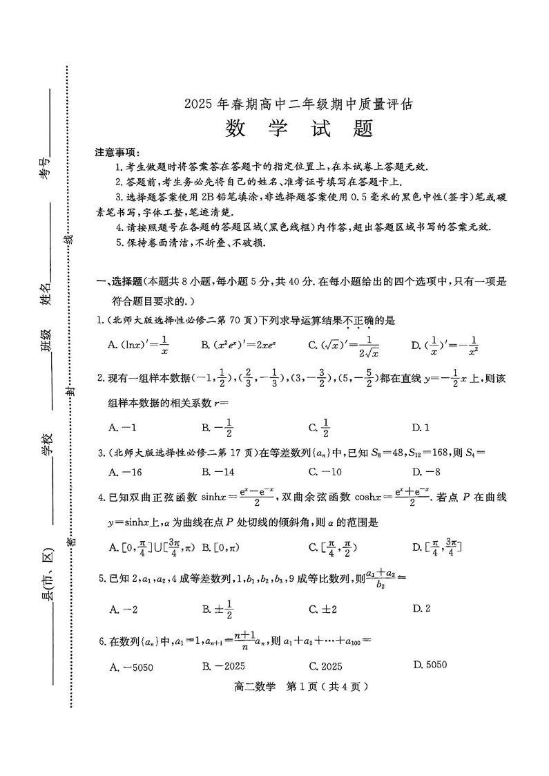 河南省南阳市2024-2025学年下学期4月高二期中考试数学+答案