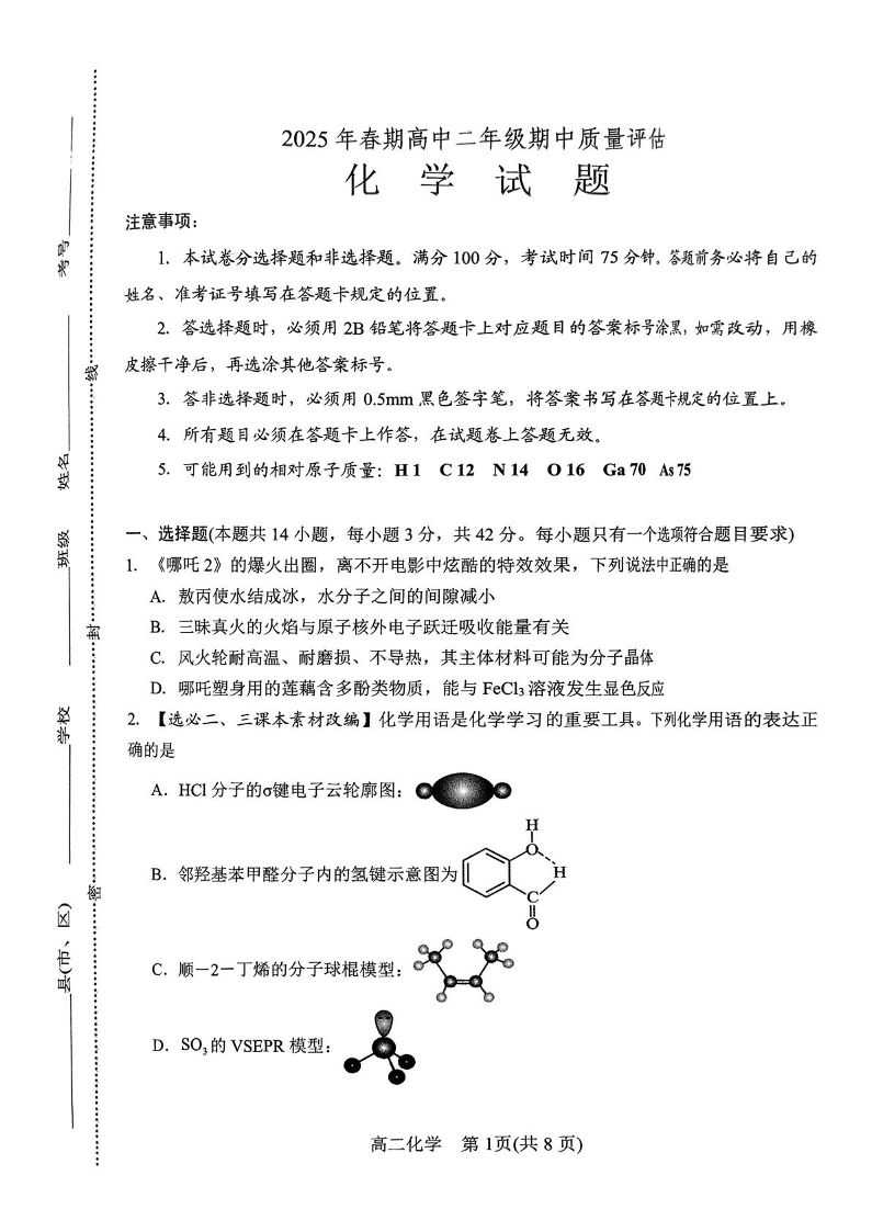 河南省南阳市2024-2025学年下学期4月高二期中考试化学