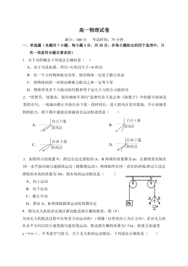 江西省上饶市重点校2024-2025学年下学期4月高一月考物理+答案